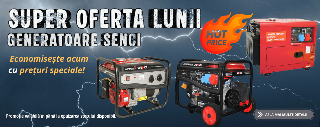 Generator curent monofazat Senci SC-3500E Lite, Putere maxima 3 kW, 230V, AVR, motor benzina este recomandat utilizarii sale atat casnic, cat si la utilizarea sa in scop comercial.