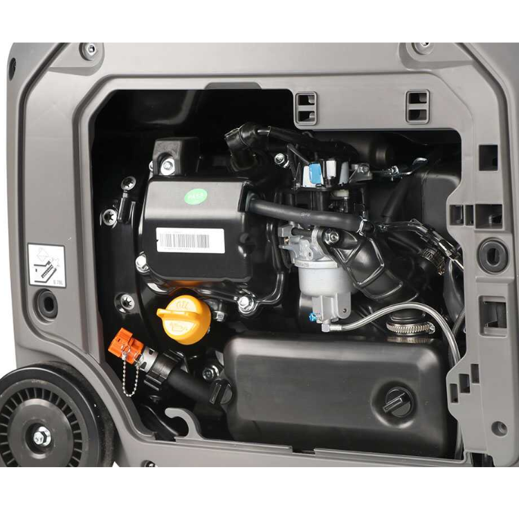 - Consum redus de combustibil – generatorul isi ajusteaza automat turatia motorului in functie de sarcina consumata, ceea ce reduce consumul si imbunatateste autonomia.